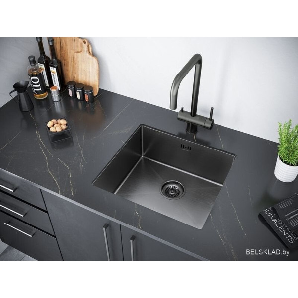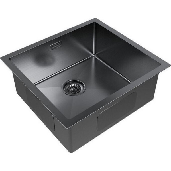 Paulmark Gerberg 48 UNI PM254844-GM (черный/вороненая сталь) - врезная под столешницу/врезная на столешницу/врезная вровень со столешницей, нержавеющая сталь, фактура: сатин, размеры: 44x48 см, глубина чаши: 20 см, в шкаф шириной от 50 см. Оригинальный Paulmark от производителя подтверждённый сертификатом соответствия.