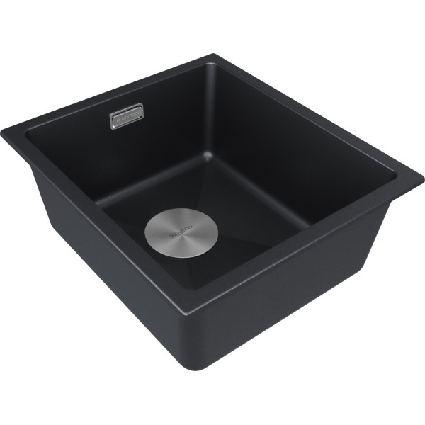 Paulmark IT-Granit Lumi 41 Uni LU41-BLM (черный/черный металлик) - врезная на столешницу/врезная под столешницу, искусственный камень, размеры: 41x46 см, глубина чаши: 21 см, в шкаф шириной от 50 см. Оригинальный Paulmark от производителя подтверждённый сертификатом соответствия.