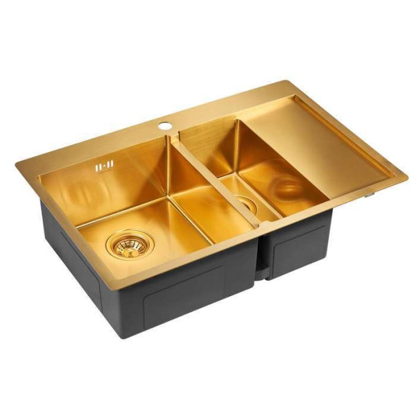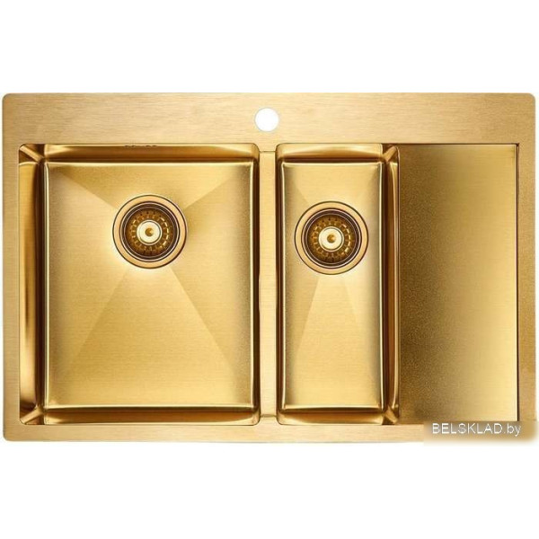 Paulmark Kroner 78/2SF PM227851-BGL - врезная на столешницу/врезная вровень со столешницей/врезная под столешницу, нержавеющая сталь, размеры: 78x51 см, глубина чаши: 20 см, в шкаф шириной от 80 см. Оригинальный Paulmark от производителя подтверждённый сертификатом соответствия.