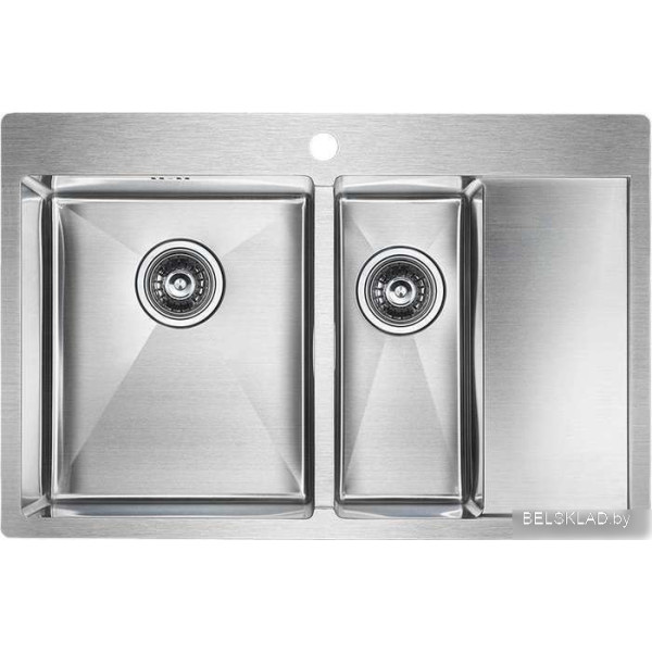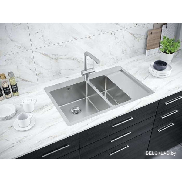 Paulmark Kroner 78/2SF PM227851-BSL - врезная на столешницу/врезная вровень со столешницей/врезная под столешницу, нержавеющая сталь, размеры: 78x51 см, глубина чаши: 20 см, в шкаф шириной от 80 см. Оригинальный Paulmark от производителя подтверждённый сертификатом соответствия.