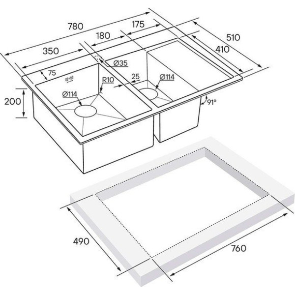 Способ установки | врезная на столешницу, врезная под столешницу, врезная вровень со столешницей |