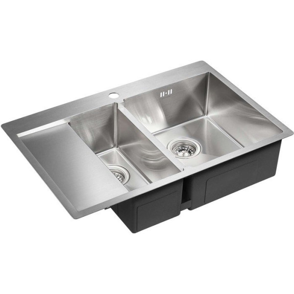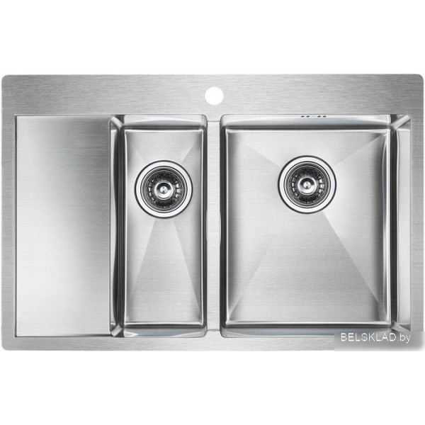 Paulmark Kroner 78/2SF PM227851-BSR - врезная на столешницу/врезная вровень со столешницей/врезная под столешницу, нержавеющая сталь, размеры: 78x51 см, глубина чаши: 20 см, в шкаф шириной от 80 см. Оригинальный Paulmark от производителя подтверждённый сертификатом соответствия.