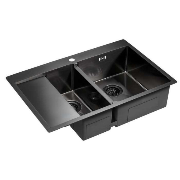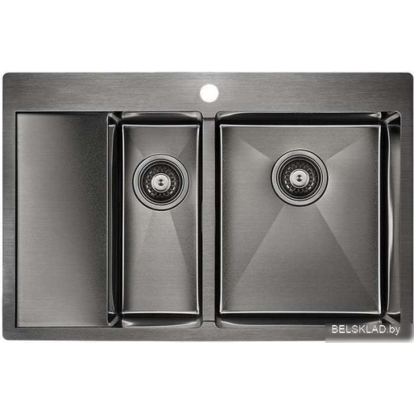 Paulmark Kroner 78/2SF PM227851-GMR - врезная на столешницу/врезная вровень со столешницей/врезная под столешницу, нержавеющая сталь, размеры: 78x51 см, глубина чаши: 20 см, в шкаф шириной от 80 см. Оригинальный Paulmark от производителя подтверждённый сертификатом соответствия.