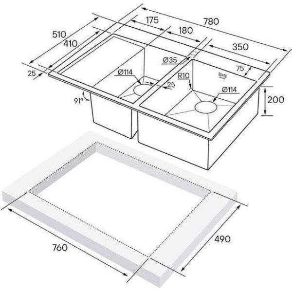 Способ установки | врезная на столешницу, врезная под столешницу, врезная вровень со столешницей |