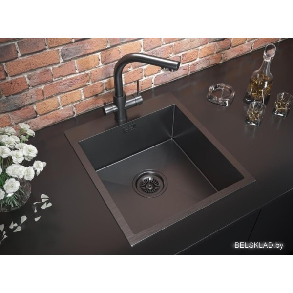 Paulmark Neckar PM804551-GM - врезная на столешницу/врезная под столешницу/врезная вровень со столешницей, нержавеющая сталь, размеры: 45x51 см, глубина чаши: 20 см, в шкаф шириной от 50 см. Оригинальный Paulmark от производителя подтверждённый сертификатом соответствия.