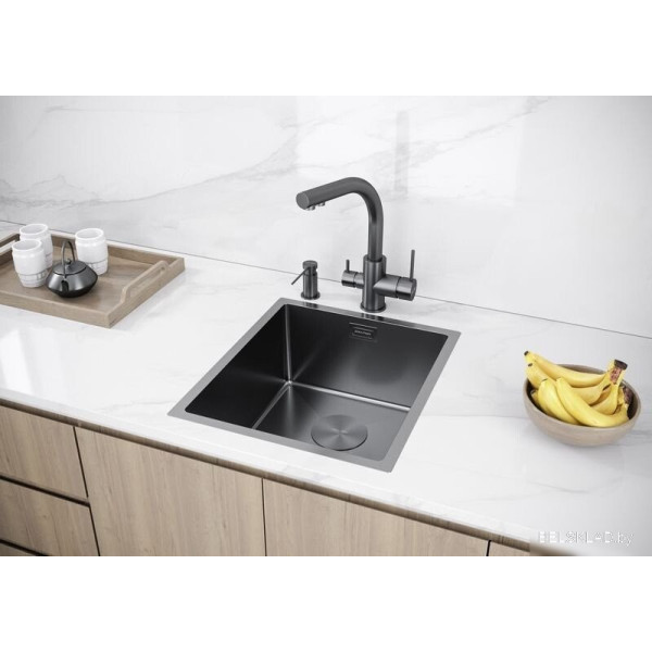 Paulmark Next 38 UNI PM213844-GM (черный/вороненая сталь) - врезная под столешницу/врезная на столешницу/врезная вровень со столешницей, нержавеющая сталь, фактура: сатин, размеры: 44x38 см, глубина чаши: 20 см, в шкаф шириной от 40 см. Оригинальный Paulmark от производителя подтверждённый сертификатом соответствия.