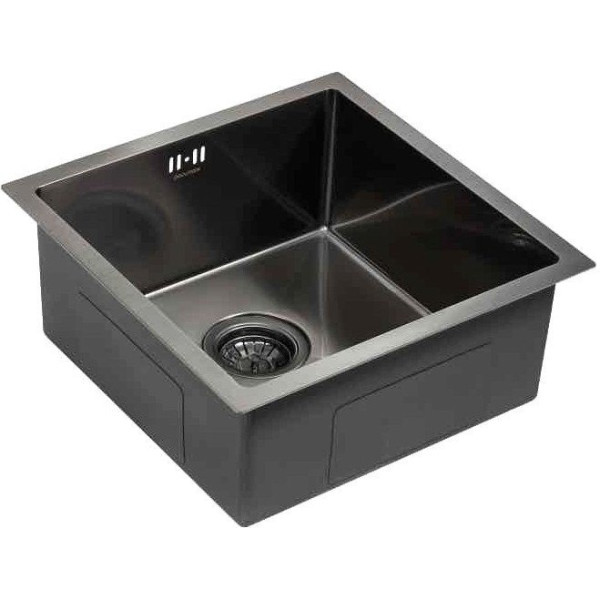Paulmark Next 44 Uni PM214444-GM (черный/вороненая сталь) - врезная на столешницу/врезная под столешницу/врезная вровень со столешницей, нержавеющая сталь, размеры: 40x40 см, глубина чаши: 20 см, в шкаф шириной от 45 см. Оригинальный Paulmark от производителя подтверждённый сертификатом соответствия.