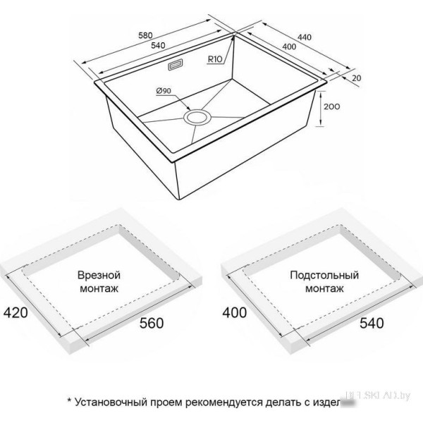 Обратите внимание: на сайте BelSklad.by все цены на Кухонные мойки указаны с НДС, возможен наличный и безналичный расчет. При заказе обязательно сообщайте код товара: 2101350.