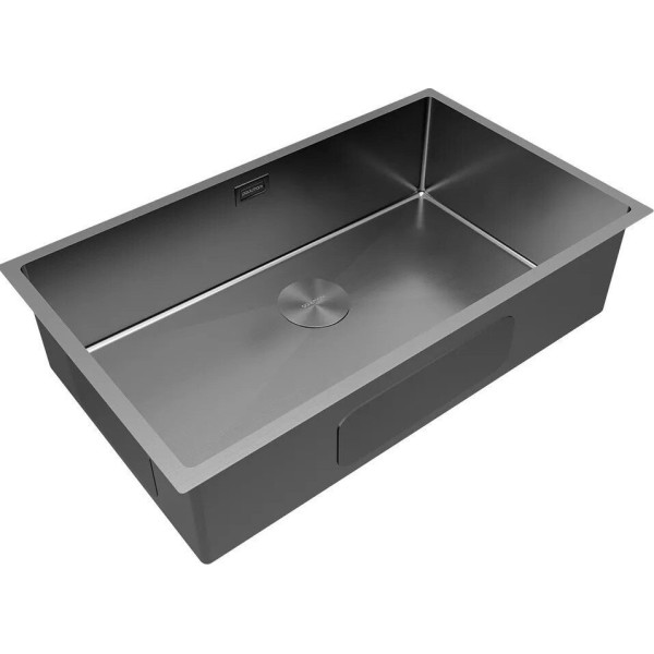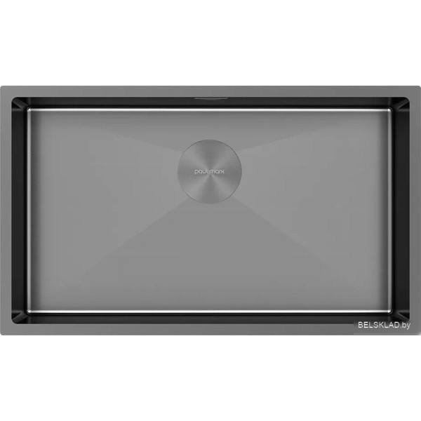 Paulmark Next 74 UNI PM217444-GM (черный/вороненая сталь) - врезная на столешницу/врезная под столешницу/врезная вровень со столешницей, нержавеющая сталь, размеры: 74x44 см, глубина чаши: 20 см, в шкаф шириной от 80 см. Оригинальный Paulmark от производителя подтверждённый сертификатом соответствия.