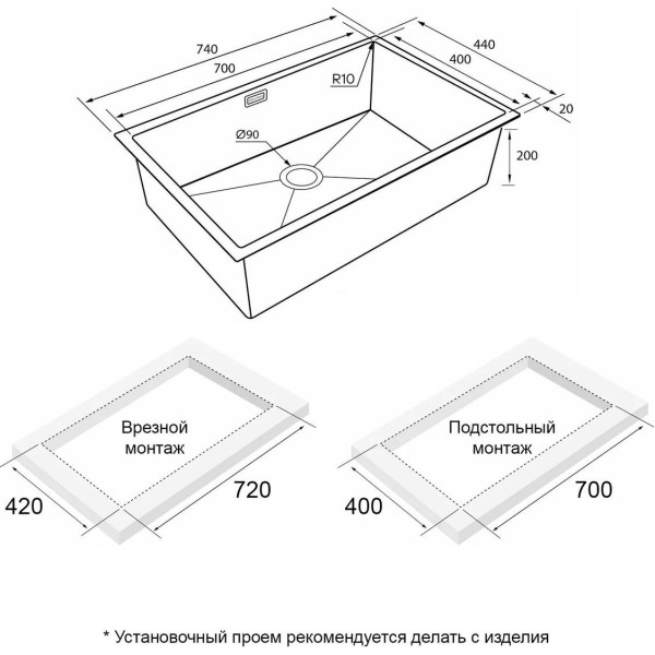 | Способ установки | врезная на столешницу, врезная под столешницу, врезная вровень со столешницей |
