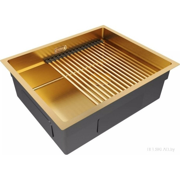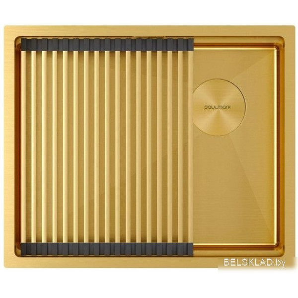 Paulmark Next-Pro 54 Uni PM705445-BG (золото/брашированное золото) - врезная на столешницу/врезная под столешницу/врезная вровень со столешницей, нержавеющая сталь, фактура: полированная, размеры: 54x45 см, глубина чаши: 20 см, в шкаф шириной от 60 см. Оригинальный Paulmark от производителя подтверждённый сертификатом соответствия.