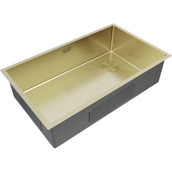 Paulmark Next-Skew 74 UNI PM887444-LG (золото/светлое золото) - врезная под столешницу/врезная на столешницу/врезная вровень со столешницей, нержавеющая сталь, фактура: сатин, размеры: 44x74 см, глубина чаши: 20 см, в шкаф шириной от 80 см. Оригинальный Paulmark от производителя подтверждённый сертификатом соответствия.