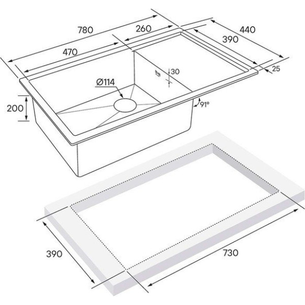 Способ установки | врезная на столешницу, врезная вровень со столешницей |