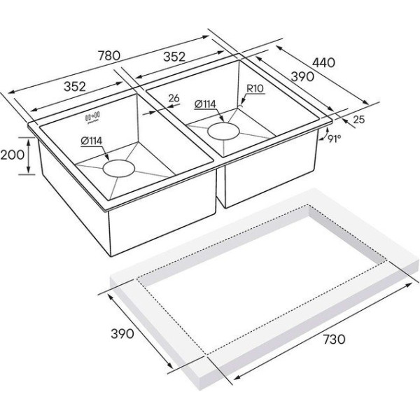 Способ установки | врезная на столешницу, врезная под столешницу, врезная вровень со столешницей |