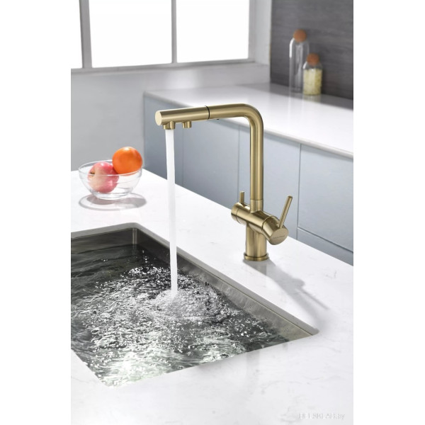 Paulmark Serpentine Se213222-LG (светлое золото) - однорычажный смеситель для кухни, монтаж на раковину или столешницу. Оригинальный Paulmark от производителя подтверждённый сертификатом соответствия.
