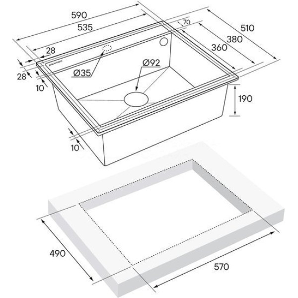 Paulmark Stepia 60 PM115951-GRS (серый дым) - врезная на столешницу, искусственный камень, размеры: 59x51 см, глубина чаши: 19 см, в шкаф шириной от 60 см. Оригинальный Paulmark от производителя подтверждённый сертификатом соответствия.