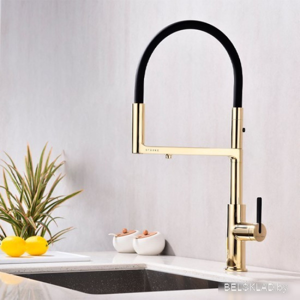Paulmark Tornado To213402-G (золото) - однорычажный смеситель для кухни, монтаж на раковину или столешницу. Оригинальный Paulmark от производителя подтверждённый сертификатом соответствия.