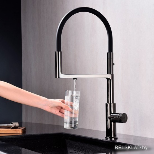 Paulmark Tornado TO213402-GB (глянцевый черный) - однорычажный смеситель для кухни, монтаж на раковину или столешницу. Оригинальный Paulmark от производителя подтверждённый сертификатом соответствия.