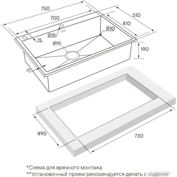 Paulmark Vast Edge PM777551-BS - врезная на столешницу, нержавеющая сталь, размеры: 75x51 см, глубина чаши: 19 см, в шкаф шириной от 80 см. Оригинальный Paulmark от производителя подтверждённый сертификатом соответствия.