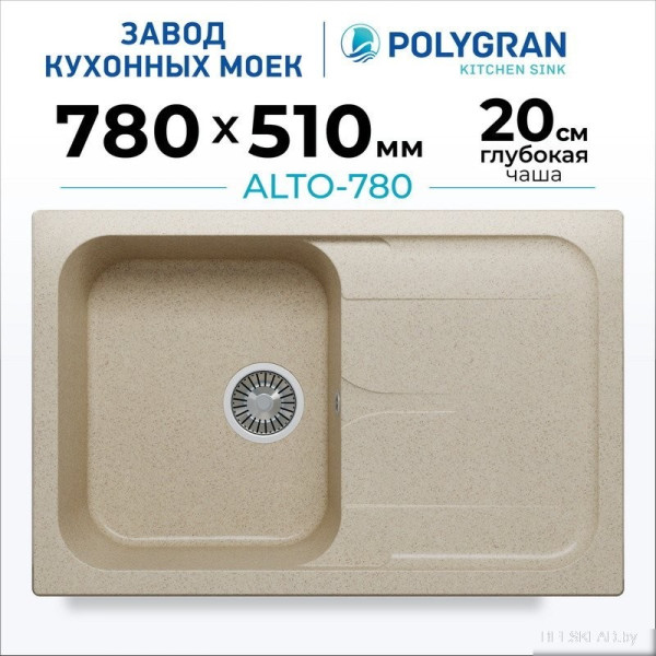 Polygran Alto 780 (опал) - врезная на столешницу, искусственный камень, фактура: матовая, размеры: 51x78 см, глубина чаши: 20 см, в шкаф шириной от 50 см. Оригинальный Polygran от производителя ООО «Полигран-М» РФ г. Москва Ленинский пр-т д. 45 подтверждённый сертификатом соответствия.