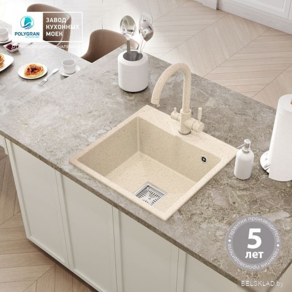 Polygran Blade 500 (кремовый) - врезная на столешницу, искусственный камень, фактура: матовая, размеры: 50x50 см, глубина чаши: 20 см, в шкаф шириной от 50 см. Оригинальный Polygran от производителя ООО «Полигран-М» РФ г. Москва Ленинский пр-т д. 45 подтверждённый сертификатом соответствия.