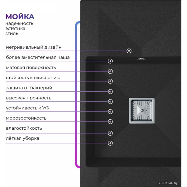 Обратите внимание: на сайте BelSklad.by все цены на Кухонные мойки указаны с НДС, возможен наличный и безналичный расчет. При заказе обязательно сообщайте код товара: 2101800.