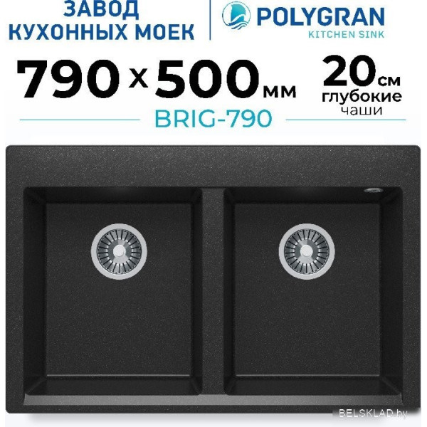 Polygran Brig 790 (черный) - врезная на столешницу, искусственный камень, фактура: матовая, размеры: 50x79 см, глубина чаши: 20 см, в шкаф шириной от 80 см. Оригинальный Polygran от производителя ООО «Полигран-М» РФ г. Москва Ленинский пр-т д. 45 подтверждённый сертификатом соответствия.