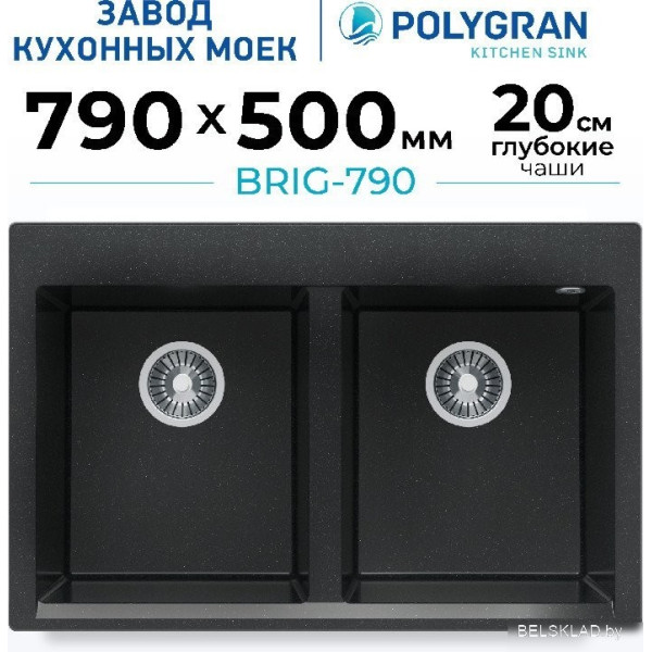 Polygran Brig 790 (космос) - врезная на столешницу, искусственный камень, фактура: матовая, размеры: 50x79 см, глубина чаши: 20 см, в шкаф шириной от 80 см. Оригинальный Polygran от производителя ООО «Полигран-М» РФ г. Москва Ленинский пр-т д. 45 подтверждённый сертификатом соответствия.