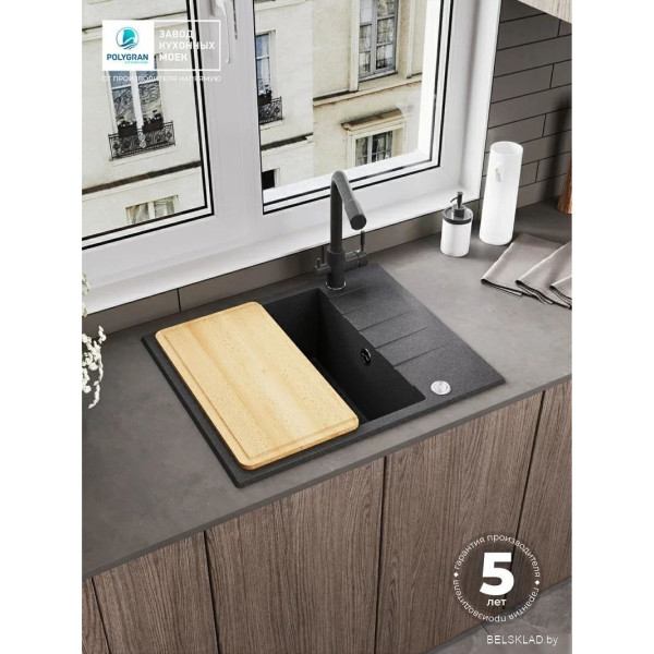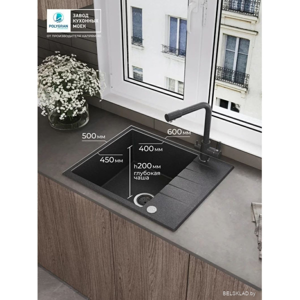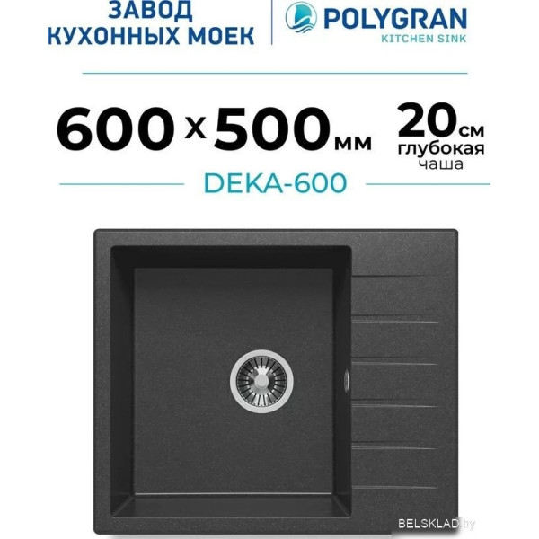 Polygran Deka 600 (черный) - врезная на столешницу, искусственный камень, размеры: 50x60 см, глубина чаши: 20 см, в шкаф шириной от 50 см. Оригинальный Polygran от производителя ООО «Полигран-М» РФ г. Москва Ленинский пр-т д. 45 подтверждённый сертификатом соответствия.