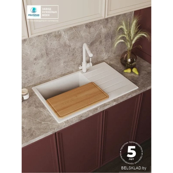 Polygran Deka 780 (белый хлопок) - врезная на столешницу, искусственный камень, размеры: 50x78 см, глубина чаши: 20 см, в шкаф шириной от 60 см. Оригинальный Polygran от производителя ООО «Полигран-М» РФ г. Москва Ленинский пр-т д. 45 подтверждённый сертификатом соответствия.