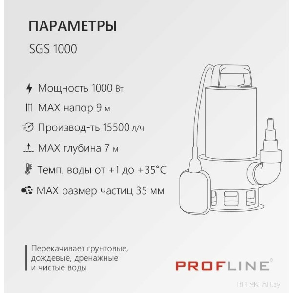 PROFline SGS 1000 - дренажный, 15.5 м?/ч, напор 9 м. Оригинальный PROFline от производителя подтверждённый сертификатом соответствия.