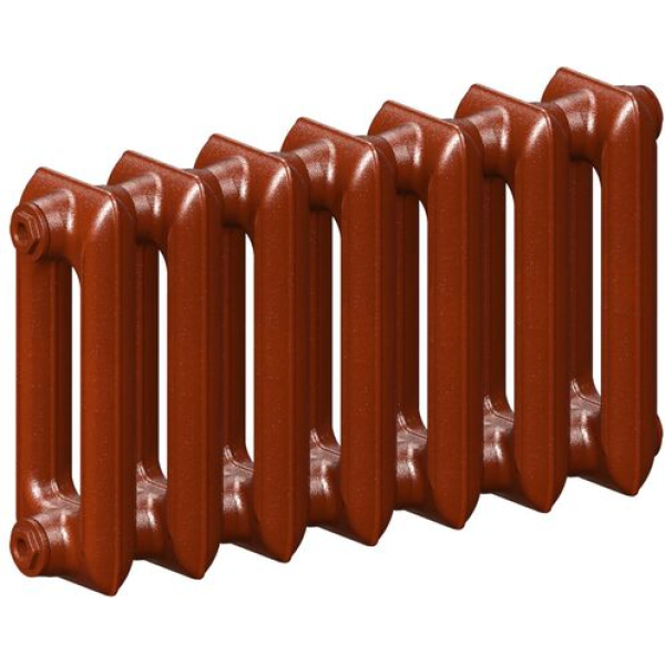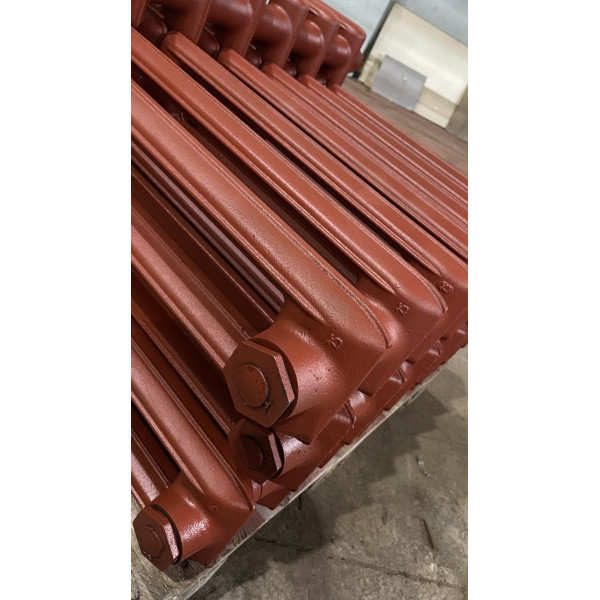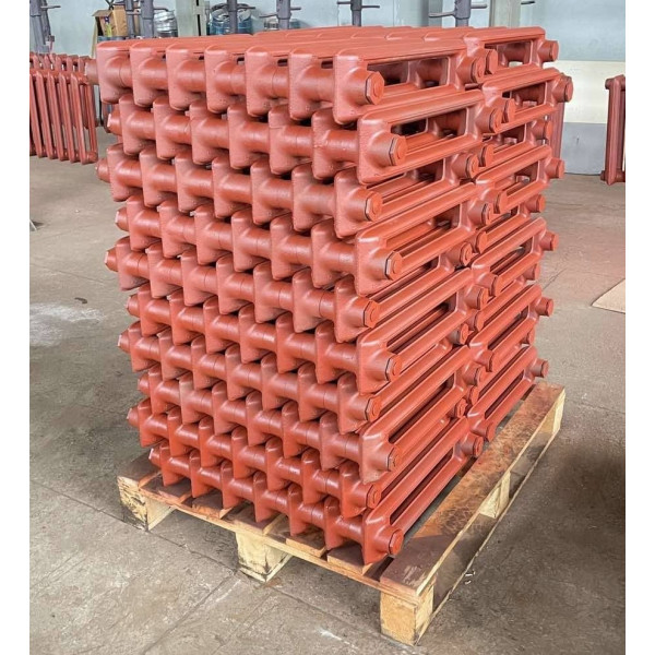 Радиатор состоит из отдельных чугунных секций, собранных на ниппелях (резьба ниппельного отверстия G 1¼˝) с помощью плоских резиновых прокладок из термостойкой высококачественной резины, что обеспечивает надежную герметичность. Прибор комплектуется двумя глухими (с левой резьбой) и двумя проходными (с правой резьбой) пробками с резьбовыми отверстиями в них (размер резьбы G ½˝ или G ¾˝ и варианты расположения пробок оговариваются при заказе).