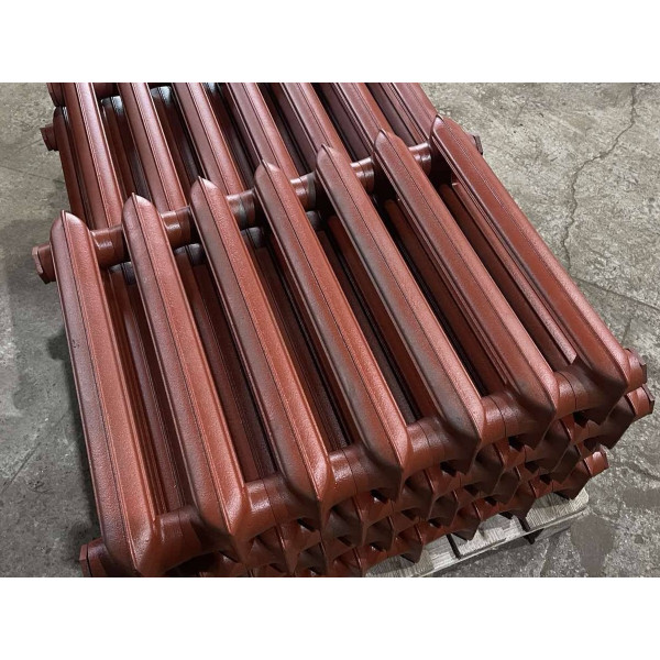 Радиатор состоит из отдельных чугунных секций, собранных на ниппелях (резьба ниппельного отверстия G 1¼˝) с помощью плоских резиновых прокладок из термостойкой высококачественной резины, что обеспечивает надежную герметичность. Прибор комплектуется двумя глухими (с левой резьбой) и двумя проходными (с правой резьбой) пробками с резьбовыми отверстиями в них (размер резьбы G ½˝ или G ¾˝ и варианты расположения пробок оговариваются при заказе).