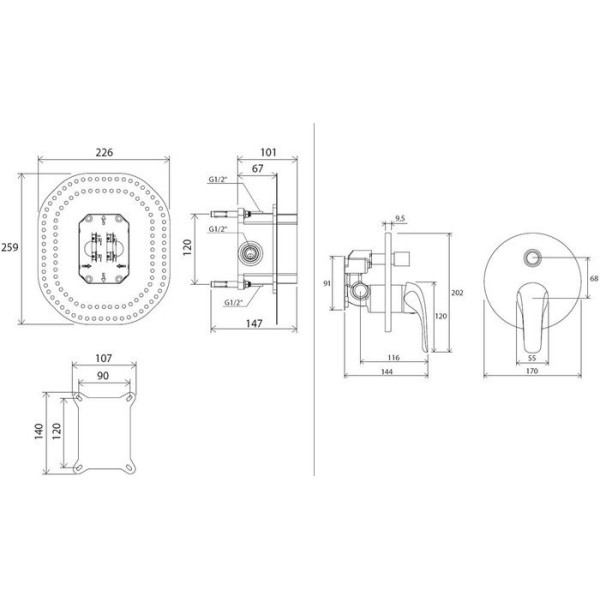 Ravak Rosa-RS 065.00 [X070050] - однорычажный смеситель для ванны и душа/для скрытого монтажа, монтаж на стену. Оригинальный Ravak от производителя подтверждённый сертификатом соответствия.
