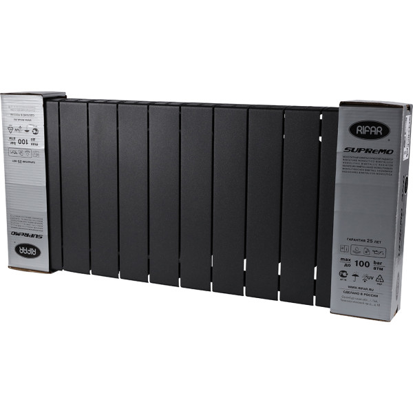 RIFAR SUPReMO 350 (12 секций) радиатор биметаллический боковое подключение (Цвет АНТРАЦИТ) - Радиатор RIFAR SUPRemo 350 состоит из двенадцати секций, имеет боковое подключение и антрацитовый цвет корпуса. Изготовлен из высококачественного биметалла, обеспечивает хорошую теплоотдачу и подходит для современных систем отопления жилых и коммерческих объектов.. Оригинальный Rifar от производителя подтверждённый сертификатом соответствия.