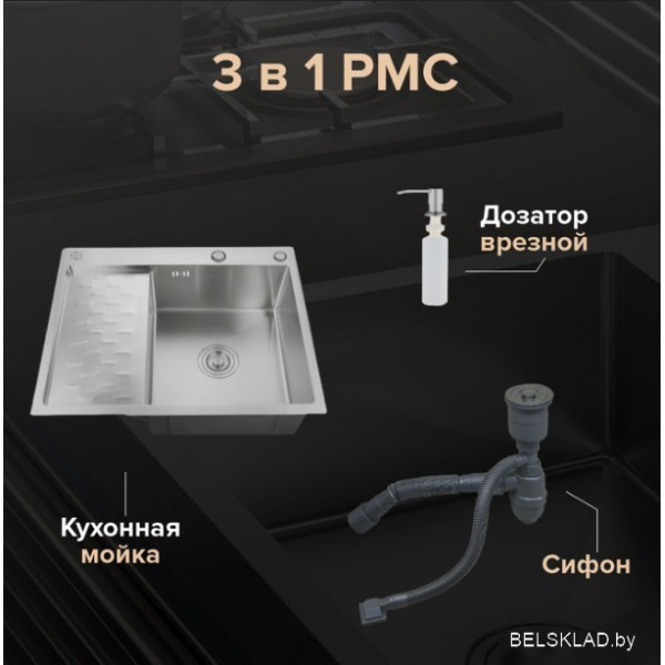 РМС MRK-6350R (с дозатором) - врезная на столешницу, нержавеющая сталь, фактура: матовая, размеры: 50x62.9 см, глубина чаши: 18 см. Оригинальный РМС от производителя подтверждённый сертификатом соответствия.