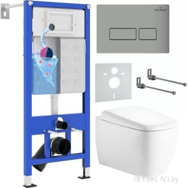Roxen Martin в комплекте с инсталляцией StounFix Dual Fresh 6 в 1 968503 (кнопка: хром - матовый) - подвесной, конструкция: компакт, задний подвод воды, универсальный выпуск, двухрежимный слив, с сиденьем, безободковый. Оригинальный Roxen от производителя подтверждённый сертификатом соответствия.