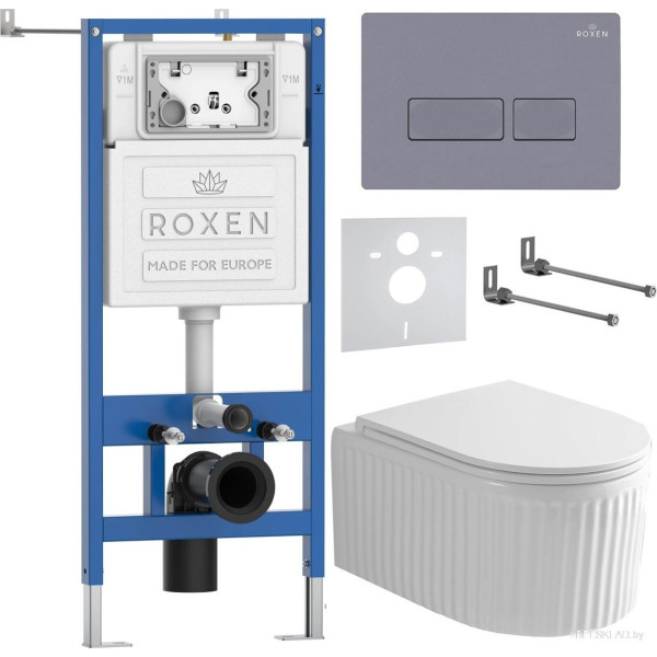 Roxen Royal Matt в комплекте с инсталляцией StounFix Dual Fresh 6 в 1 968226 (кнопка: серый бетон) - подвесной, конструкция: без бачка, задний подвод воды, горизонтальный выпуск, двухрежимный слив, с сиденьем, безободковый. Оригинальный Roxen от производителя подтверждённый сертификатом соответствия.
