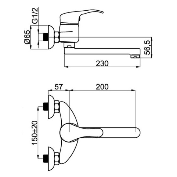 Rubineta Star P-14 - однорычажный смеситель для ванны, монтаж на стену. Оригинальный Rubineta от производителя UAB „RUBINETA Savanori? pr. 180 LT-03154 Vilnius подтверждённый сертификатом соответствия.