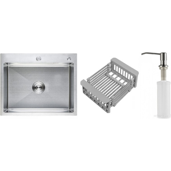 Schtoff Best Premium Silver 6050 + коландер KR-1 GREY + дозатор SD-1 SILVER - врезная на столешницу, нержавеющая сталь, фактура: матовая, размеры: 60x50 см, глубина чаши: 20 см. Оригинальный Schtoff от производителя подтверждённый сертификатом соответствия.