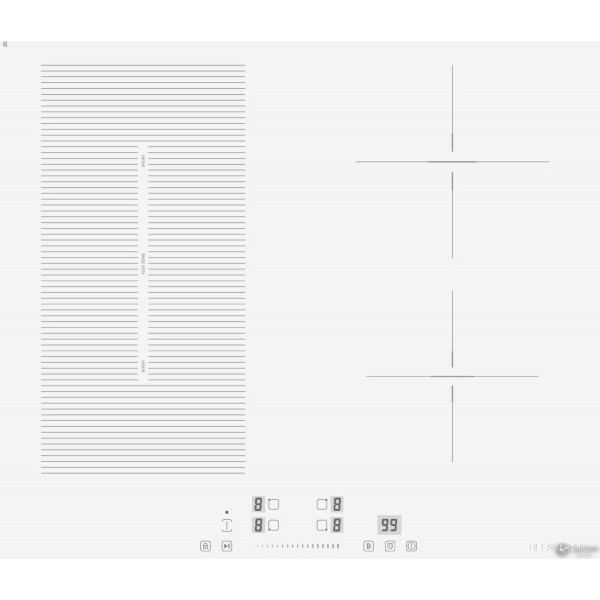 | Подробная информация о конфорках | левая передняя конфорка 180мм, 1800Вт/бустер 2200Вт --- левая задняя конфорка 180мм, 1300Вт/бустер 1500 Вт --- правая задняя конфорка 180мм, 1800Вт/бустер 2200 Вт --- правая передняя конфорка 180 мм, 1300Вт/бустер 1500Вт --- флекси зона 180*380мм 3000Вт/ бустер 3600 Вт |