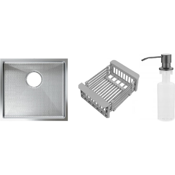 Schtoff Undermount Best Decor Silver 4545 + коландер KR-1 GREY + дозатор SD-1 GREY - врезная под столешницу, нержавеющая сталь, фактура: с текстурой, размеры: 45x45 см, глубина чаши: 20 см. Оригинальный Schtoff от производителя подтверждённый сертификатом соответствия.