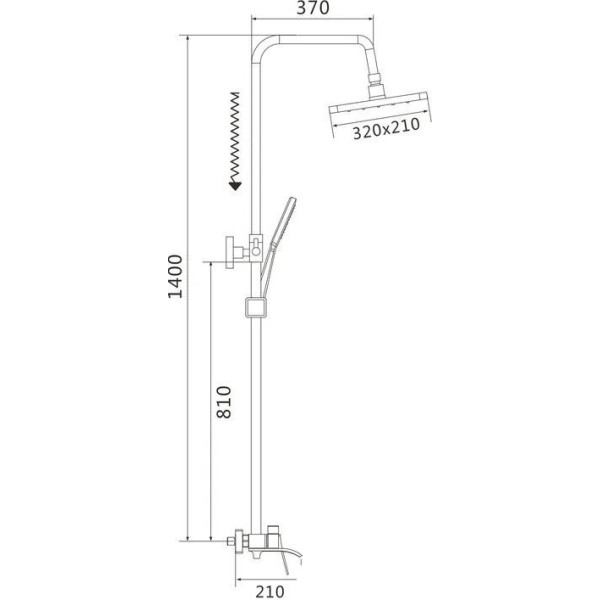 | Форма верхнего душа | прямоугольная (320x210 мм) |