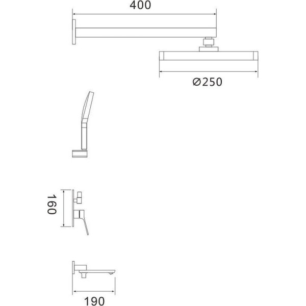 | Диаметр (ширина) верхнего душа | 250 мм |