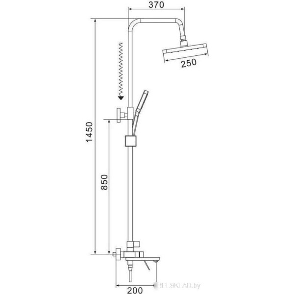 | Комплектация | верхний душ, ручной душ (лейка), держатель лейки, шланг, смеситель, излив для ванны |