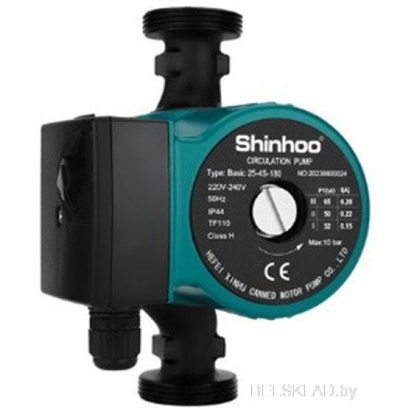 Shinhoo Basic 25-4S-180 (с гайками) - циркуляционный, 3 м?/ч, напор 4 м, давление 10 бар. Оригинальный Shinhoo от производителя подтверждённый сертификатом соответствия.