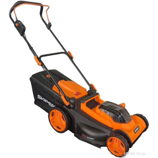 Skiper KW430 (с 2-мя АКБ) - роторная газонокосилка, аккумуляторный двигатель, 21 В, аккумулятор в комплекте, ширина скашивания: 43 см, мягкий травосборник 50 л. Оригинальный Skiper от производителя подтверждённый сертификатом соответствия.