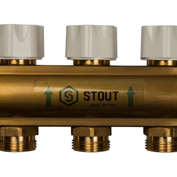 SMB 0473 000005 STOUT Распределительный коллектор из латуни с расходомерами 5 вых. - Stout (Стаут) Коллектор регулируемый с расходомерами 1/3/4x5 должен работать при рабочем давлении 10 бар и максимальной температуре охлаждающей жидкости до 70 градусов. Регулирующие клапаны могут приводиться в действие термоэлектрическими розеточными приводами, управляемыми комнатными термостатами.