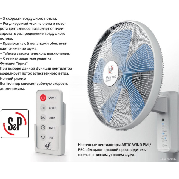 Soler&Palau ARTIC-400 PRC - настенный, мощность 55 Вт, 3 скорости, управление электронное, таймер, пульт ДУ, лопасти 40 см, питание: сеть. Оригинальный Soler&Palau от производителя подтверждённый сертификатом соответствия.