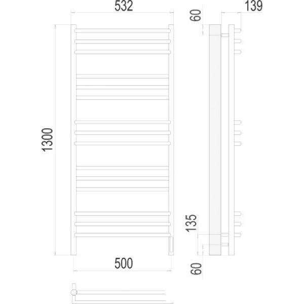 TERMINUS Прато П15 500x1300 (хром) - электрический, "лесенка", нержавеющая сталь, 130x53.2 см, цвет: хром. Оригинальный TERMINUS от производителя ООО Терминус Россия Московская область г.Электросталь ул.Горького д.32 подтверждённый сертификатом соответствия.
